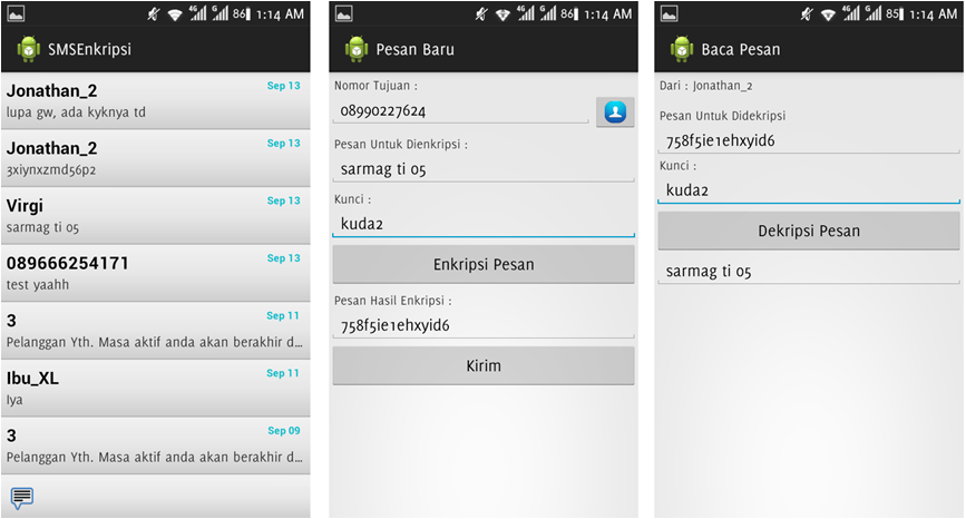 7. Implementasi Algoritma Kriptografi Kode Caesar, Vigenere, Dan Transposisi Untuk Sistem Proteksi Penggunaan Pesan Singkat (SMS) Pada Smartphone Android (Download APK)